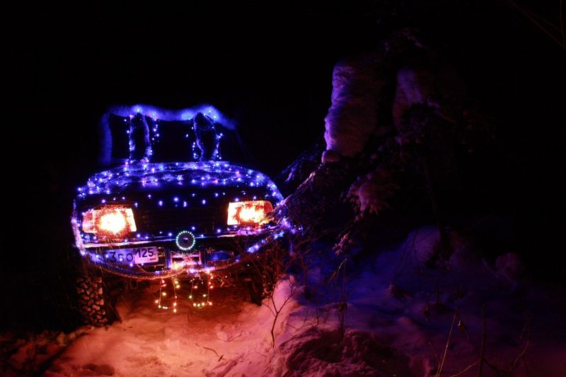 Но самое экзотическое, конечно, светящиеся гирлянды и неоновые огни. Предлагаем вашему вниманию варианты украшения для вашего автомобиля.